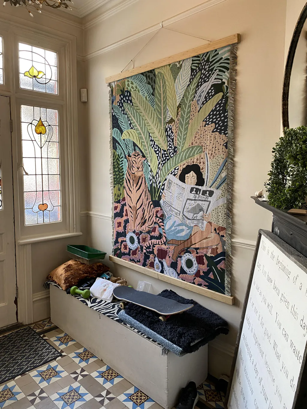 I am absolutely in love and it's so great to see my hanging Kiko blanket every time I walk into my house. Makes my entry way look so cosy and it gets sooo many compliments. No one walks in and doesn't say wow! Great quality materials, and the hanging frame is sturdy and easy to set up.