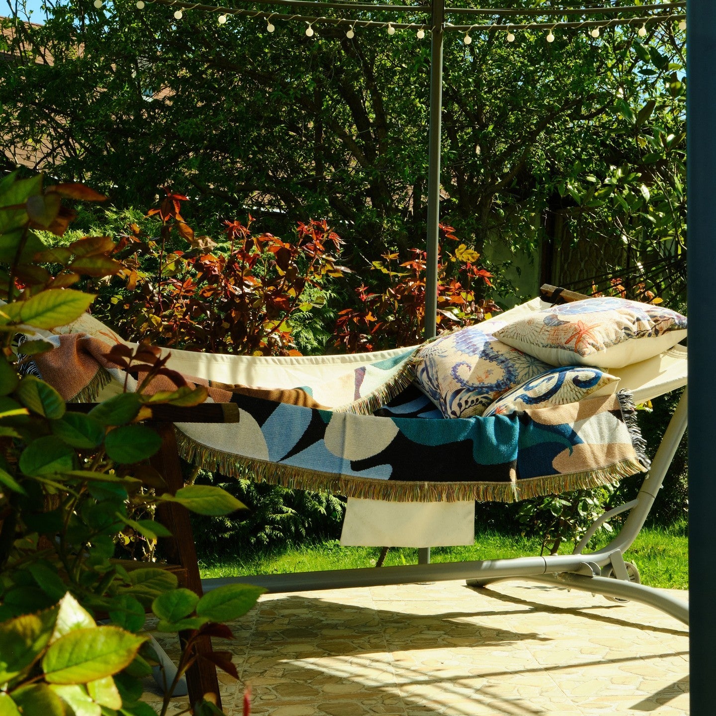 Our blankets are crafted from a polycotton blend that includes 80% recycled cotton and 20% polyester. This combination ensures enhanced color vibrancy and exceptional softness, making our blankets both eco-friendly and comfortable.